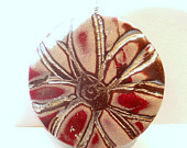 Stephanie works with polymer clay to fashion clay pendants like the one pictured below. She also carries vintage coin and button pendants in her shop.